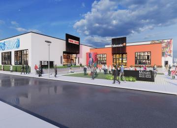 The food hall and rooftop bar at Mosaic Detroit could open next year