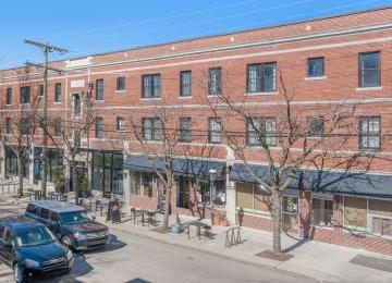The brick building has 16 apartments and multiple storefronts